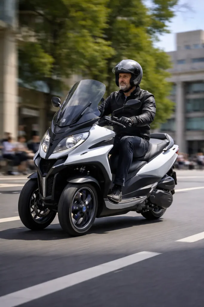 Pensé pour répondre aux contraintes de la ville, le MP3 combine agilité, sécurité et praticité. Ses technologies d’assistance à la conduite, son freinage performant et son confort à bord en font une solution particulièrement adaptée aux conducteurs en quête d’efficacité, sans renoncer au plaisir de rouler.