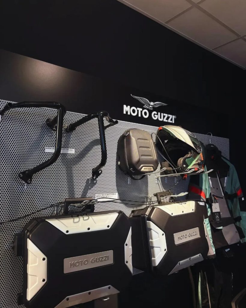 De plus, notre concession propose une gamme complète d’accessoires Moto Guzzi, incluant des vêtements, des casques, des équipements techniques et divers autres accessoires. Dans notre boutique, vous trouverez tous les accessoires et l’équipement du motard nécessaires. Découvrez notre sélection et personnalisez votre expérience de conduite en associant style et fonctionnalité.